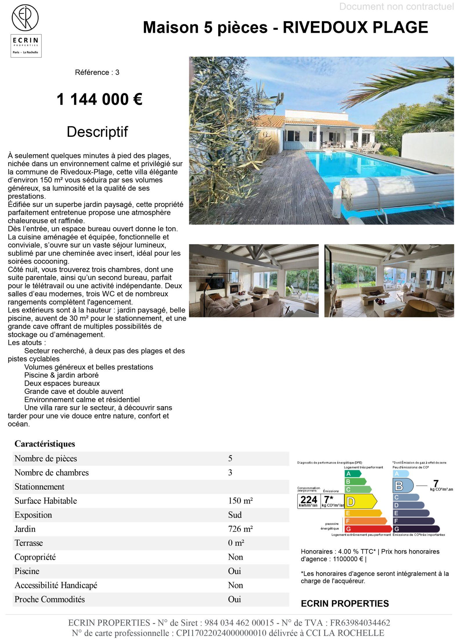 546 000 € – 150 m² - 2100 m2 de parcelle - Piscine